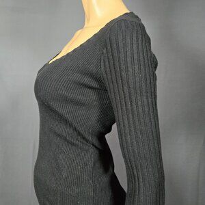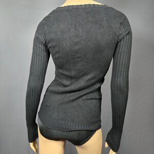Y2K Parasuco Black Skinny Ribbed Long Sleeve Sweater Size S Goth Grunge Academia