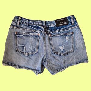 Y2K Lulu by Parasuco distressed low rise denim shorts, size 27