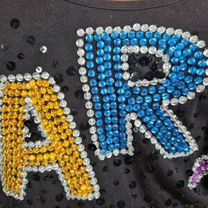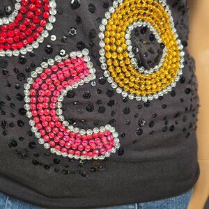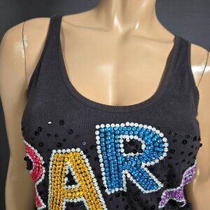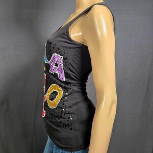 * Vintage Parasuco black/multicolor spellout sequined tank top, size S
