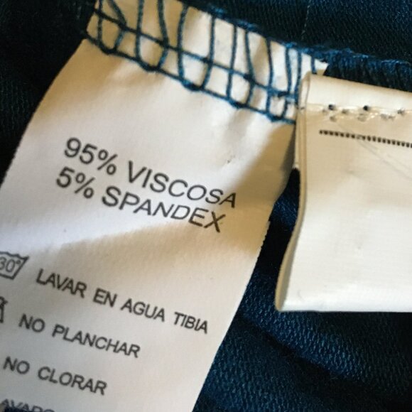Very good preowned condition, peacock blue, bubble hem tank top with ruffled fabric roses on the right strap by 'B By Boulevard'. Stretchy and bouncy, probably bamboo.