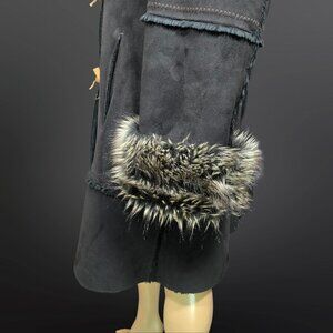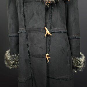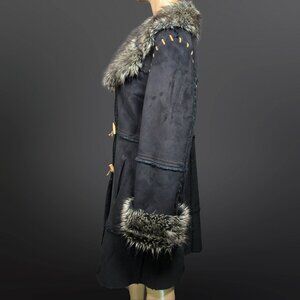 Y2K Penny Lane Coat Size L Jones New York Black Faux Suede Faux Fur Trim Boho