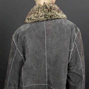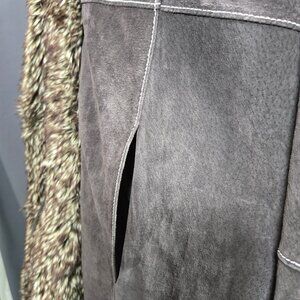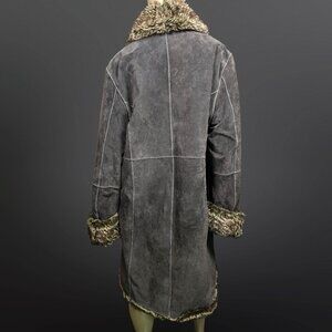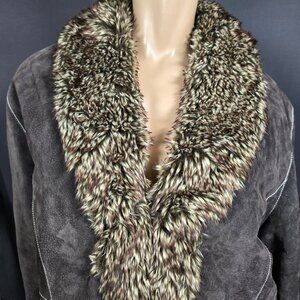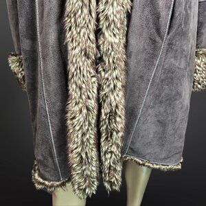 Y2K Penny Lane Coat Size XL Boho Brown Suede Leather Faux Fur Trim Long
