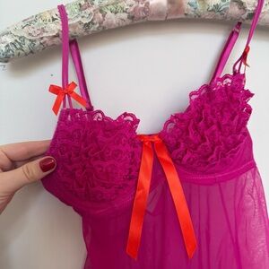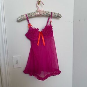 Y2K Pink Lace Babydoll Lingerie XS coquette Fairycore Cottagecore