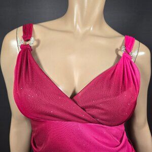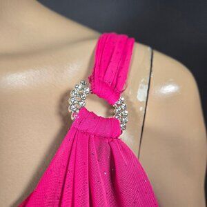 Y2K Pink Mesh Glitter Dress Size 6 Sleeveless Ruffled Ruched Rhinestones Fairy
