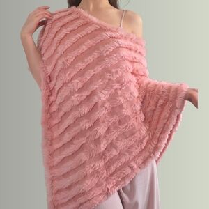 Y2K Pink Rabbit Fur Poncho