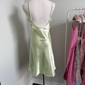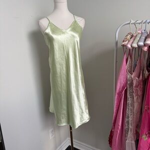 Y2K Pistachio Green Satin Slip Dress Fairycore Minimalist Lingerie Tinkerbell M