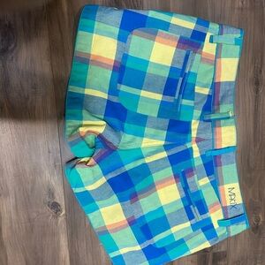 Add a pop of color to your wardrobe with these vibrant plaid women's shorts. Featuring a striking combination of blue and yellow, these shorts are perfect for a casual outing.