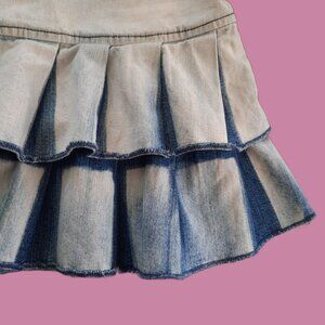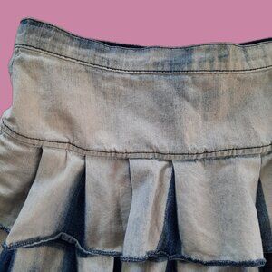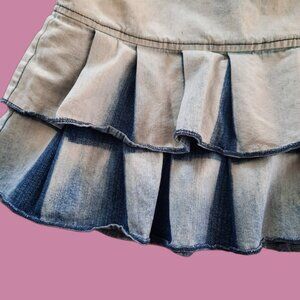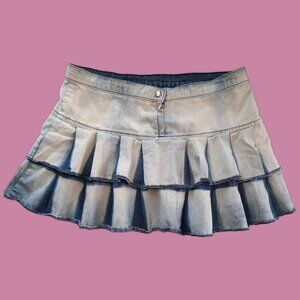 Y2K Pleated Ruffled Denim Mini Skirt US Size 7 Light Wash Tiered Layered McBling