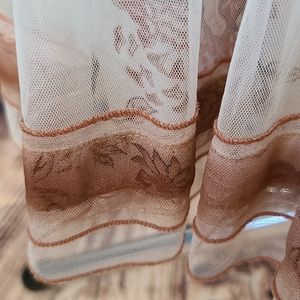 Cute skirt with tulle mesh sheer layers. Underneath is jacquard floral fabric