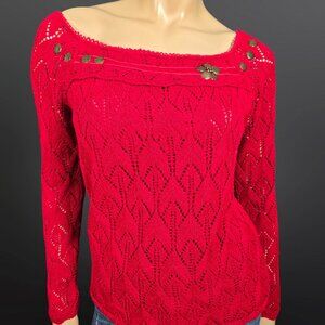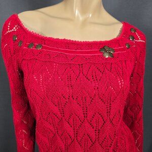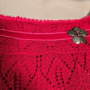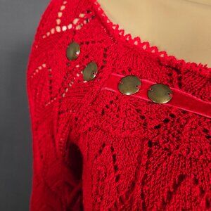 Y2K Red Beaded Sweater Womens Size L Fairy Boho Whimsigoth Velvet Ribbon Trim