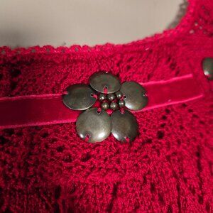 * Y2K red sweater with beading and velvet ribbon trim, size S
