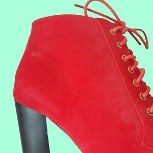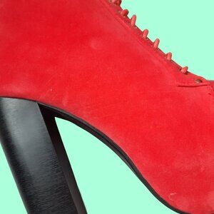 Y2K Red High Heel Platform Lace Up Booties Boots US 8 Faux Suede Indie Sleaze
