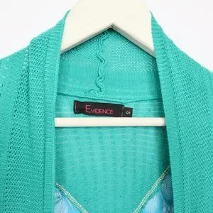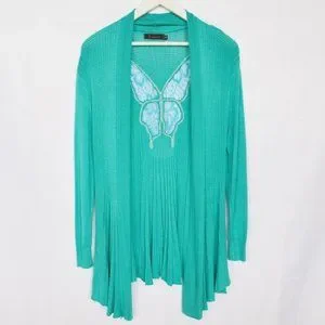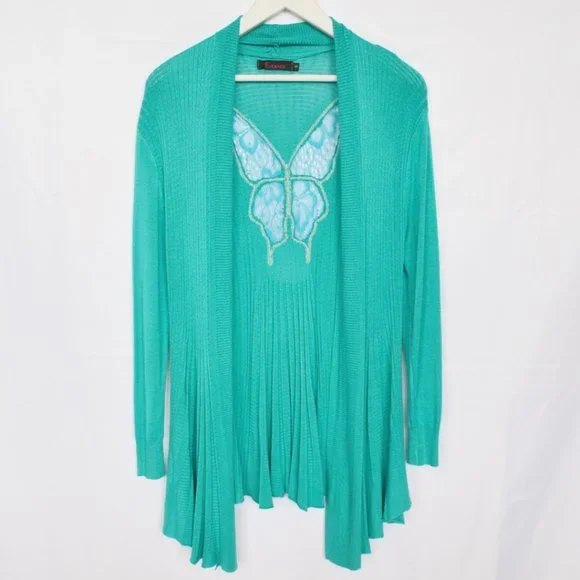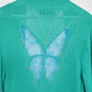 Y2K Rhinestone Butterfly Lace Turquoise Ribbed Cardigan
