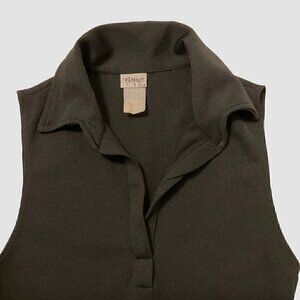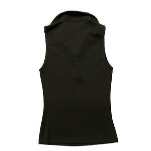 Y2K Ribbed Black Sleeveless collared Top