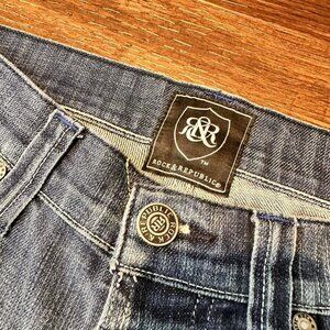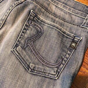 Blue Rock & Republic jeans with faded finish and subtle flared/bootcut legs. Size 31. Classic Y2K style with premium details, perfect for streetwear or early 2000s-inspired outfits. Comfy and easy to style with tees or hoodies.