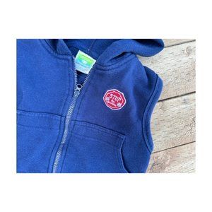 Y2K Sesame Street Beginnings Fleece Hoodie Vest Navy Blue "Stop for Cookies" Pat