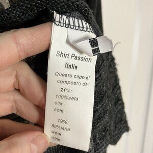 Shirt Passion Italia Cardigan Womens Sweater Silk Wool Open Front Gray Black Lagenlook