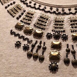 New with tags Y2K dead-stock short sleeve top with hand-beaded embellished jewel neckline. Round neck. Chic jeweled neckline details. Comfortable, soft, breathable fabric with some stretch.