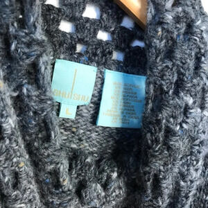 Shu Shu Wool Blend Belted Marled Granny Knit Cardigan & Turtleneck Matching Set Lagenlook Boho Artsy
