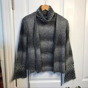 Y2K Shu Shu Wool Blend Belted Marled Granny Knit Cardigan & Turtleneck Set