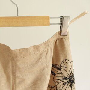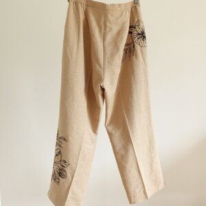 Y2K Silkland Beige Silk Pants w/ Embroidered Flower Size Petite
