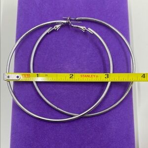 These elegant silver hoop earrings add a touch of sophistication to any outfit. Perfect for any occasion. Very JLo Y2K