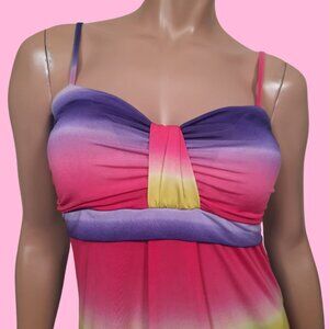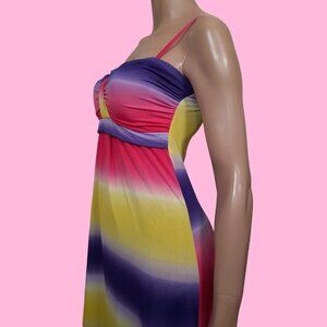 Y2K bright colorful ombre striped stretch maxi dress, size M