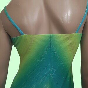 Y2K Slip Dress Size S Blue Green Metallic Stripe Midi Fairy Mermaid Party