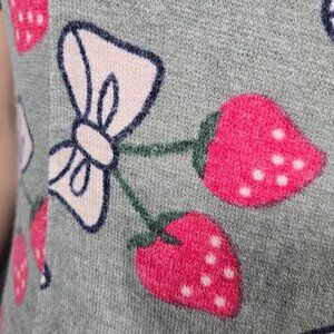 Y2K Strawberry Bow Print Mini Dress Buttons Size M Green Pink Fairy Coquette