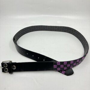 Y2K Studded Belt Checkered Checkerboard Purple Black Leather Emo Goth
