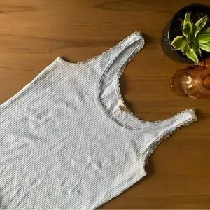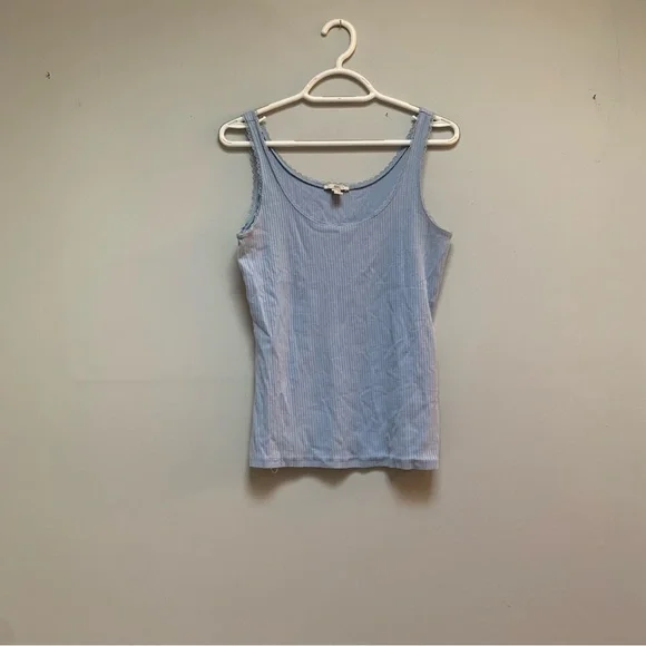 Chic light blue tank top with ribbed texture. Soft and comfortable. Ideal for everyday wear.