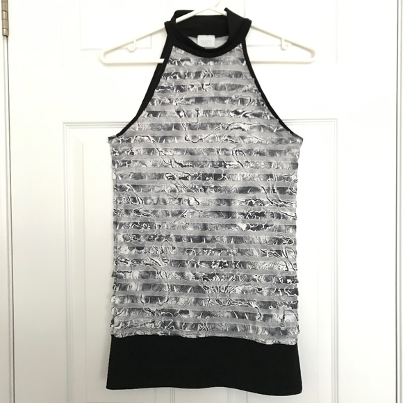 Y2K Suzy Shier Floral Sleeveless High Neck Blouse Top M Black White