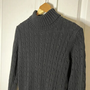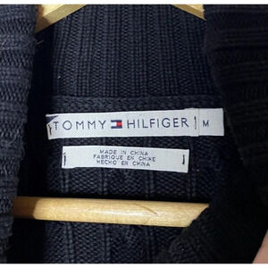 Y2K Tommy Hilfiger Black Chunky Ribbed Cable Knit Turtleneck Sweater Womens M
