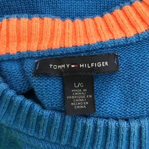 Y2K Tommy Hilfiger Cotton Blend Crewneck Sweater L Blue Orange White Long Sleeve