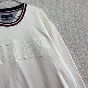 Y2K Tommy Hilfiger Sweatshirt Crew Neck Mens XXL White Embossed Spell Out Read
