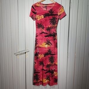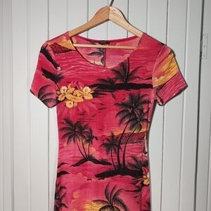Hawaiian Palm Tree floral bodycon Dress strechy material no tag see measurements guc