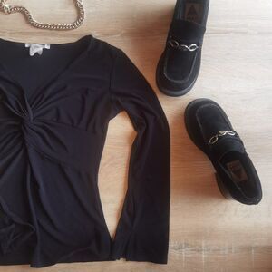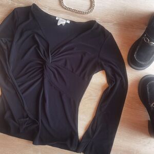 Amazing slightly belled sleeves with Slit detail on hem and cuff. Twist Front and shorter cropped design this a great top from the early 2000s