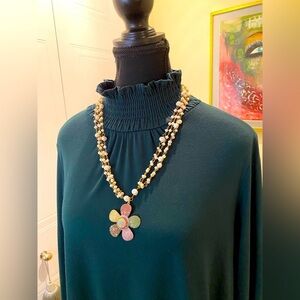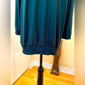 Y2K Uniqlo Japan green mock neck tunic w/ smocking collar & hem 💚