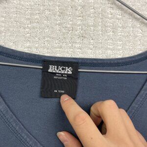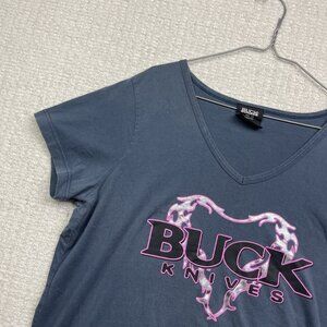 Y2K VTG Buck Knives Gray V Neck T Shirt Women's XXL Goth Holographic Heart Cyber