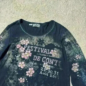 🔥Y2K VTG Vanilla Sugar graphic long-sleeve with gem detailing western pattern