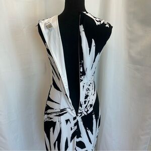 Y2K Vintage Cache Black + White Floral Print V-Neck Bodycon Stretchy dress Sz 6