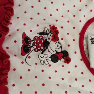 Adorable Disney dress featuring embroidered Minnie Mouse and floral design. Red and white colours.