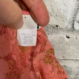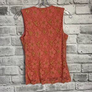 Y2K Vintage Jessica sheer glitter sparkle pink/orange gold lace sweetheart sweetheart neckline empire waist fully lined sleeveless camisole tank top blouse.