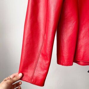 Tags: 2000s Vintage Red Leather Jacket Genuine Leather Jones New York Tailored Minimalist Statement Retro Chic Classic Bold Timeless Evening Wear Fashion Forward Natural Fabric Baddie Going Out Rock Biker