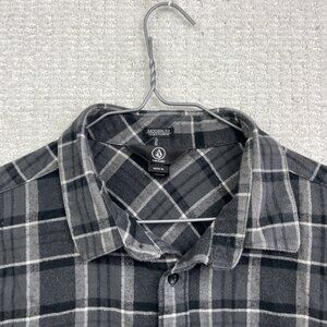 Y2K Volcom Black Modern Fit Plaid Flannel Button Up Shirt Men’s Size XL Skate