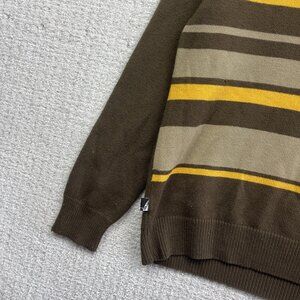 Y2K Volcom Mens M Brown / Yellow Long Sleeve Stripe Thermal Shirt Sweater Knit