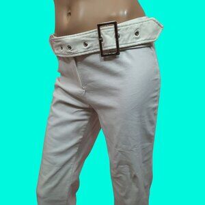 Y2K White Bootcut Pants Big Buckle Belted Stretch Mid Rise US Size 7