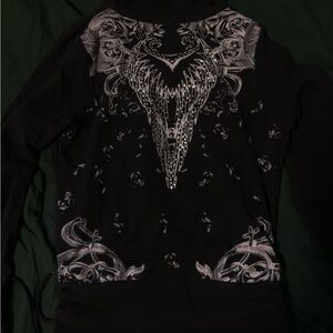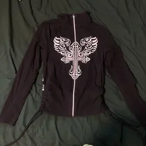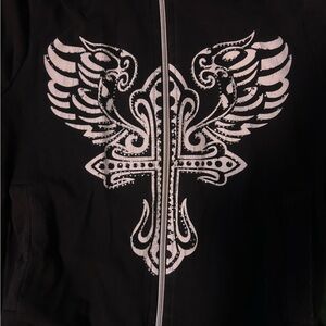 Y2K Winged Cross Rhinestone Zip Up
