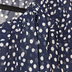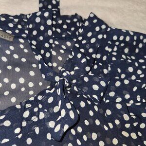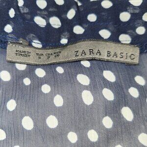 Y2K Zara Basic Dark Blue And White Polka Dot Sheer Blouse, S