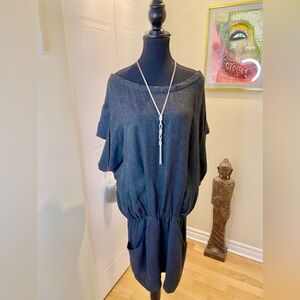 Y2K, Zara dress w/cinch elastic waist. Dark heather grey/short sleeve/pockets đź©¶